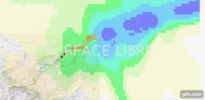 - Prévisions de précipitations par des modèles météorologiques (GFS, WRF, AROME ou ARPEGE Météo France).