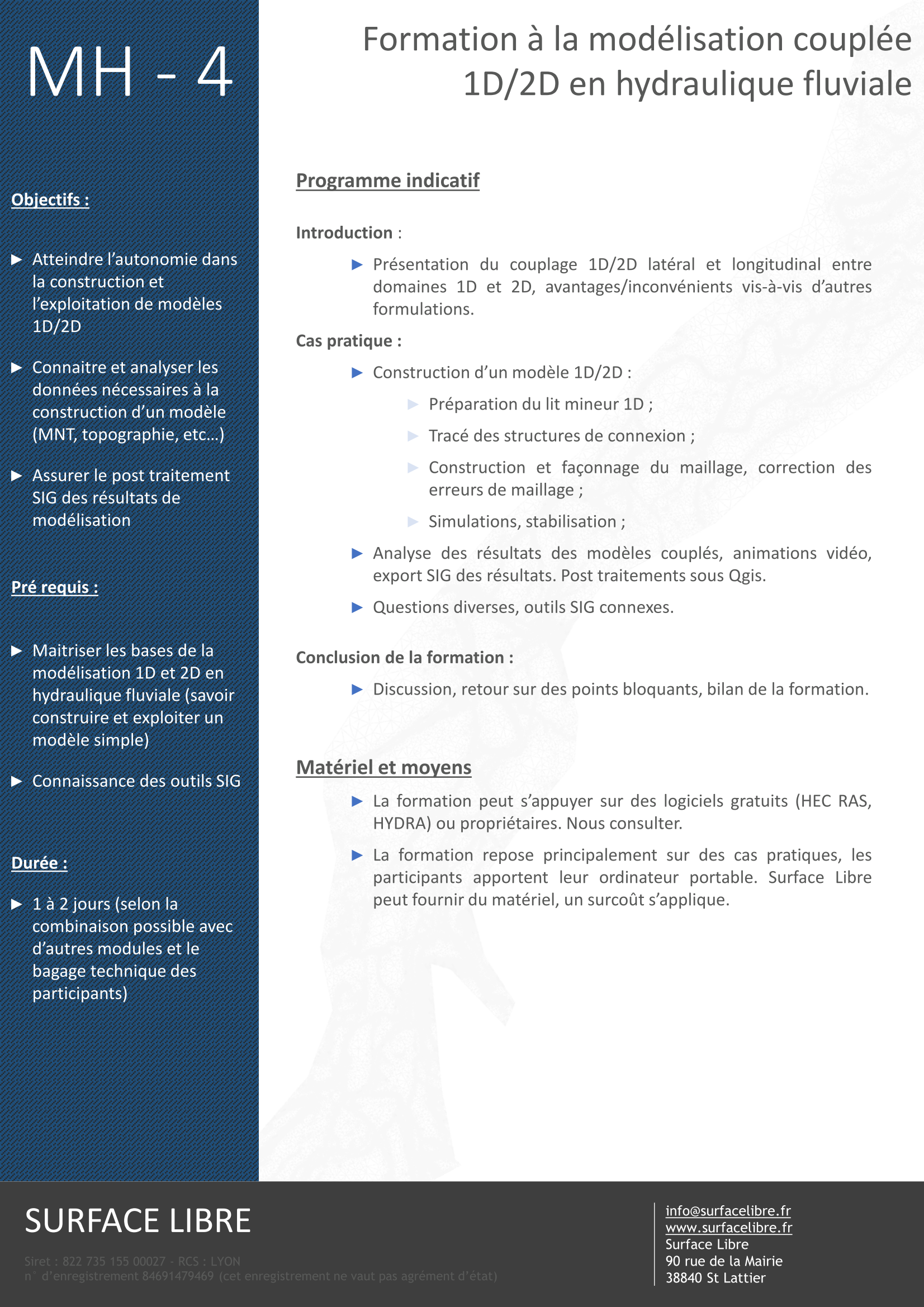 Nous proposons des prestations de formation1 intra-entreprise ou groupées, sur un ou plusieurs jours, sur site ou à distance, sur les thématiques liées aux études d'hydraulique fluviale et urbaine.